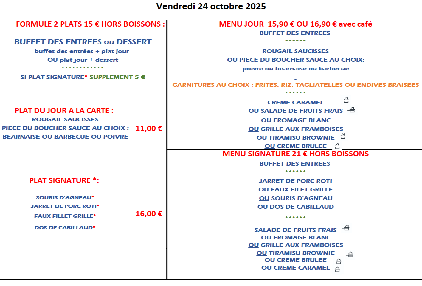 Menu à partir de 15.,90 € avec buffet des entrées.